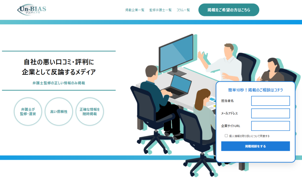 自社の悪い口コミ・評判に、企業として公式に反論するメディアです。